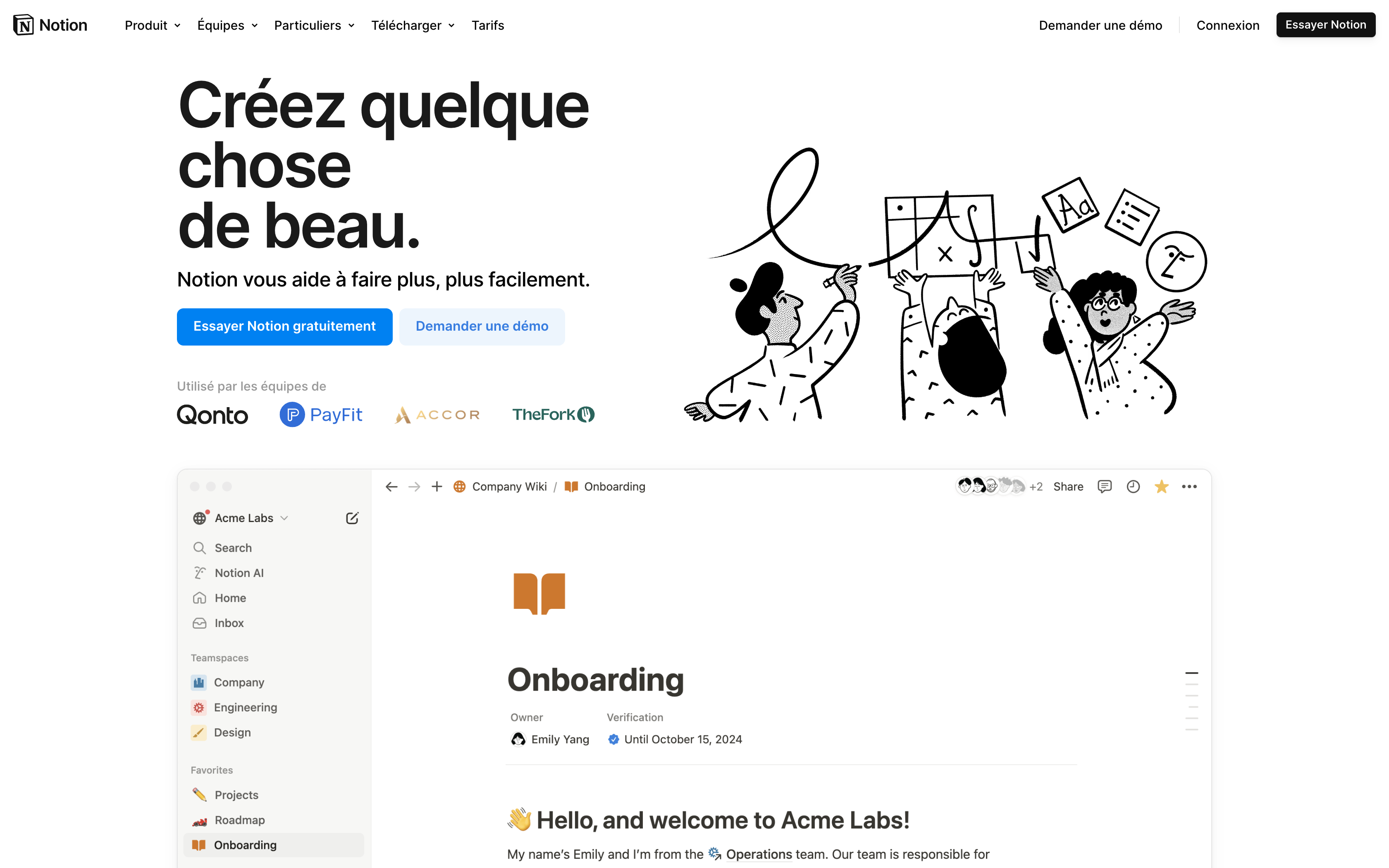 Notion est une plateforme tout-en-un qui combine notes, bases de données et gestion de projet pour organiser vos idées et travaux efficacement.