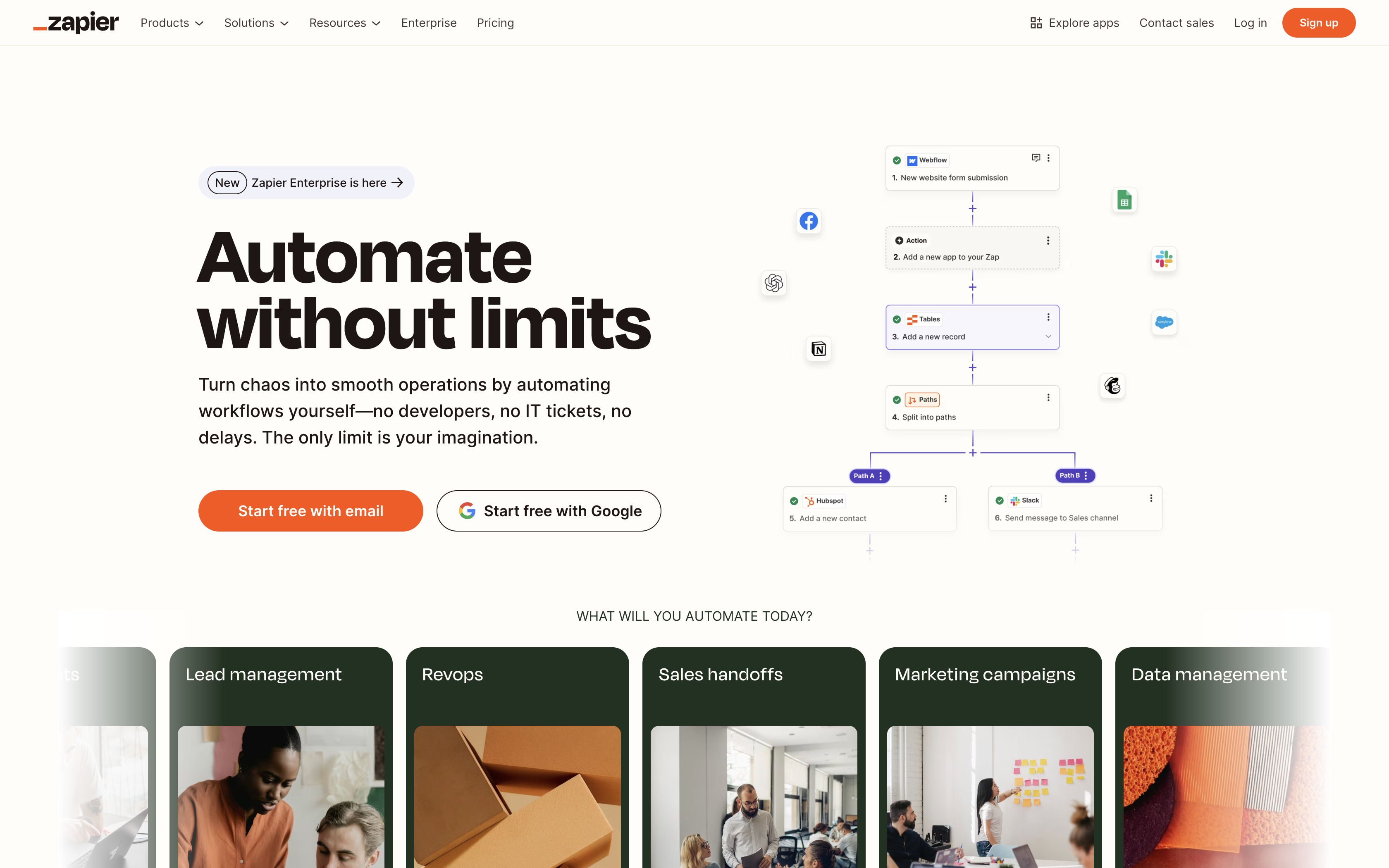 Zapier automatise vos tâches en connectant vos applications préférées, simplifiant ainsi votre flux de travail sans aucune programmation.